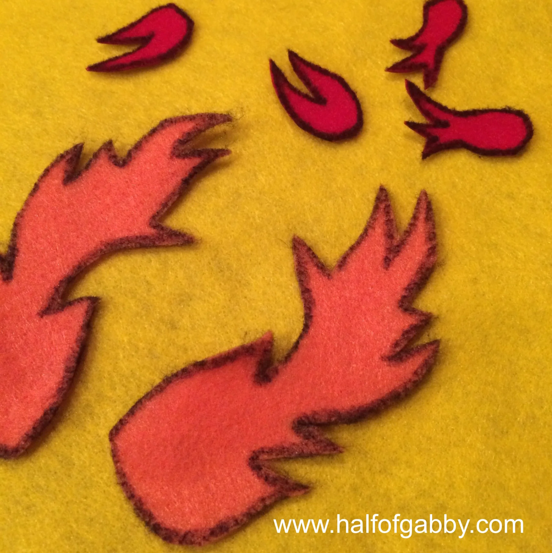 4. Cut out flames from orange and red felt (or whatever color you prefer). Then take a black Sharpie and outline your flames to make them stand out.