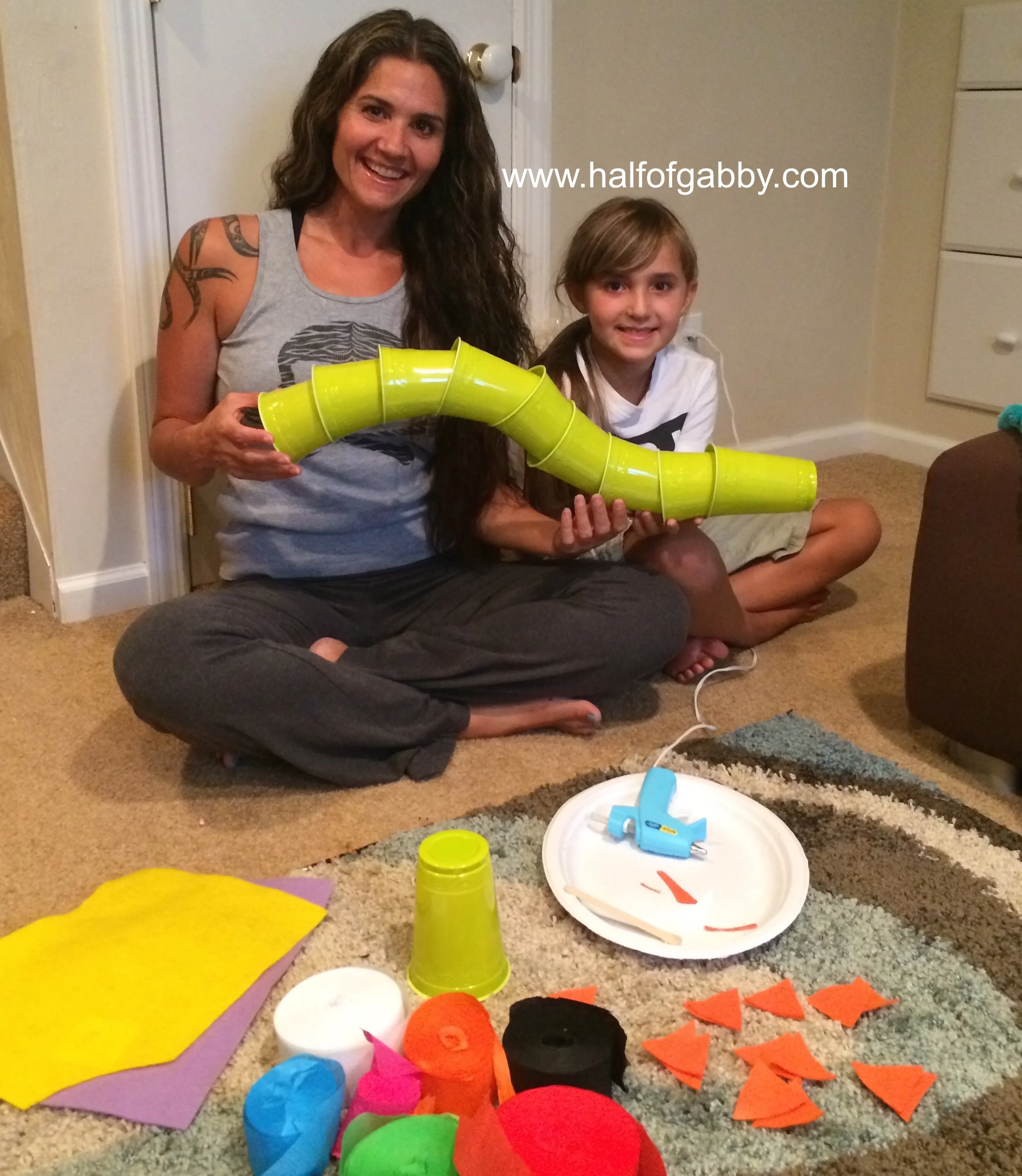 While you're using the hot glue gun, have your child cut streamers to whatever length you want them. We cut ours to be around 10".