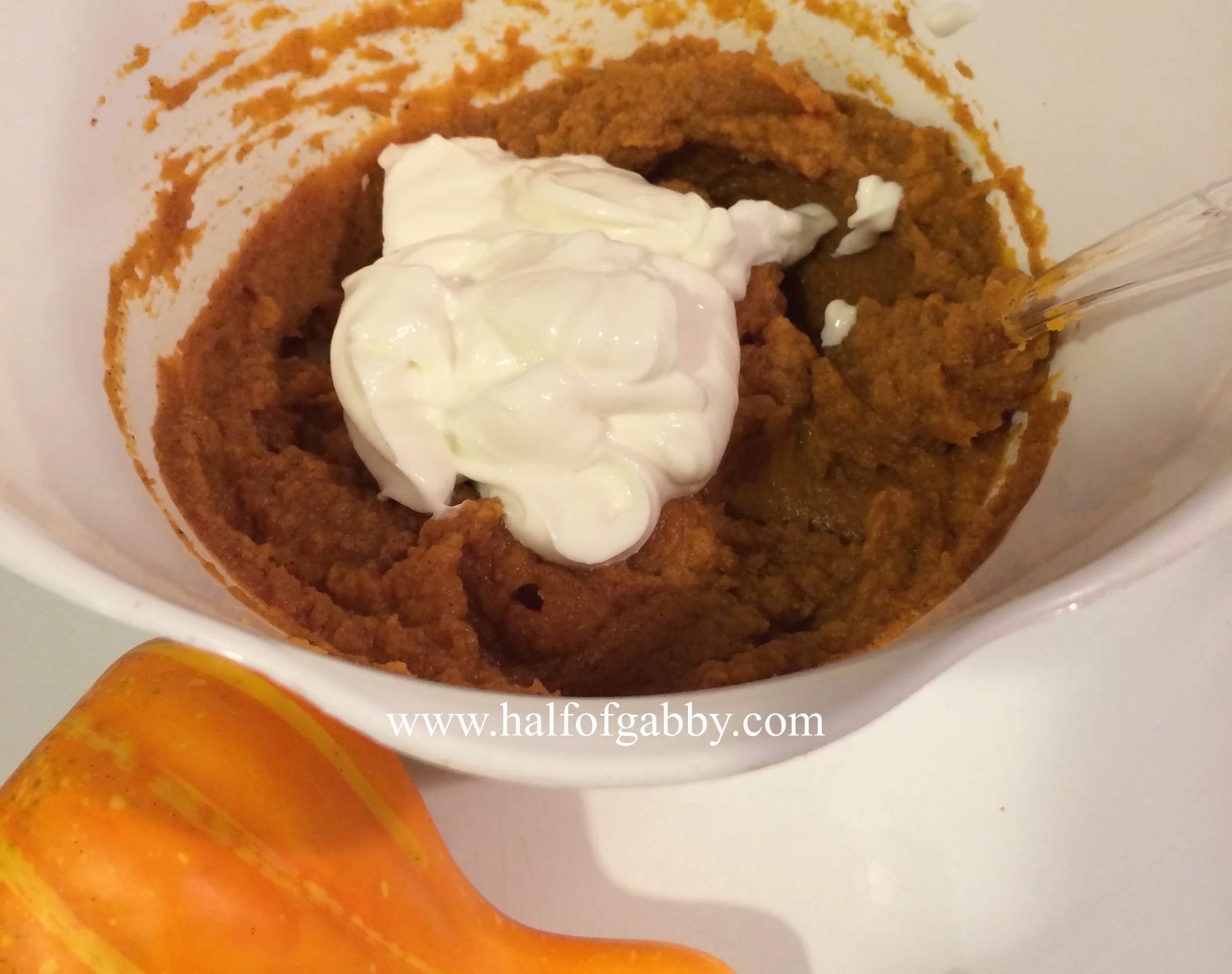 5. Add greek yogurt to pumpkin mixture and stir well.