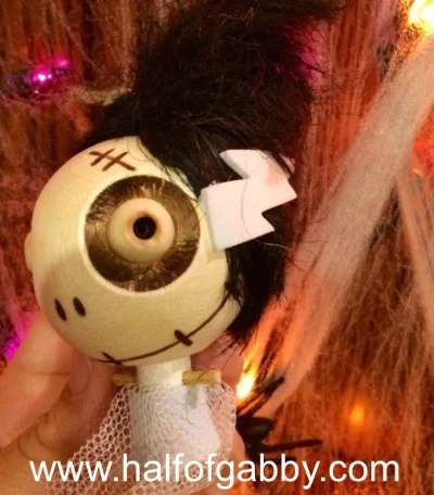 Ah, here we have the one and only Bride of Frankenstein. I love her little white-netted wedding dress. And how 'bout her white, lightening bolt-shaped highlight? Forget about it!