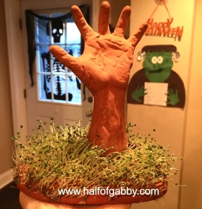 As you can see, our Zombie Chia Pet REALLY did turn out looking just like the one on the box! So cool! It's only been growing for about six days. We can't wait to see it in another week!
