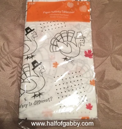 I found this cute paper table cloth for only $1.97 at Hell-Mart. Such a simple but ingenious idea! My little girls will love doodling and coloring with crayons on this table cloth. It'll help pass the time for them while I'm scrambling in the kitchen with the big bird and 45 sides.