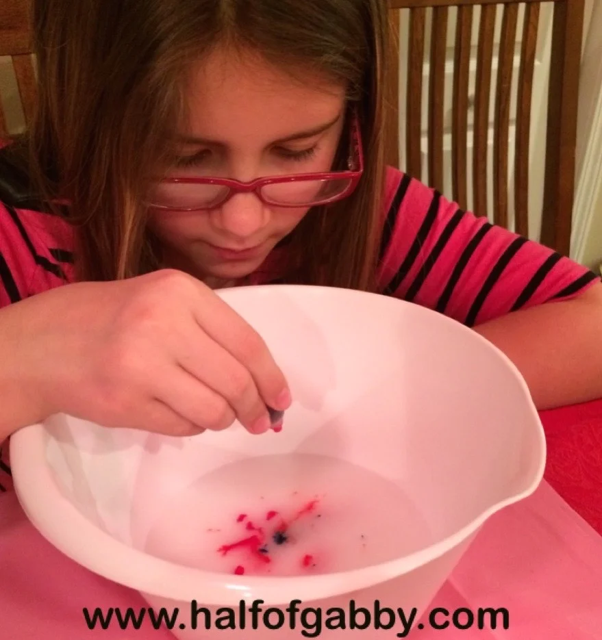 Then we let it sit until the color pieces melted into the white (then we flipped it over and did it to the other side).