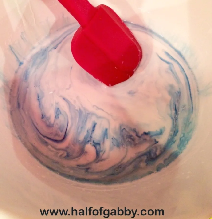 4. Add food coloring until you reach your desired color. The kids have fun with this! Have them keep adding drops and mixing until they love the color!