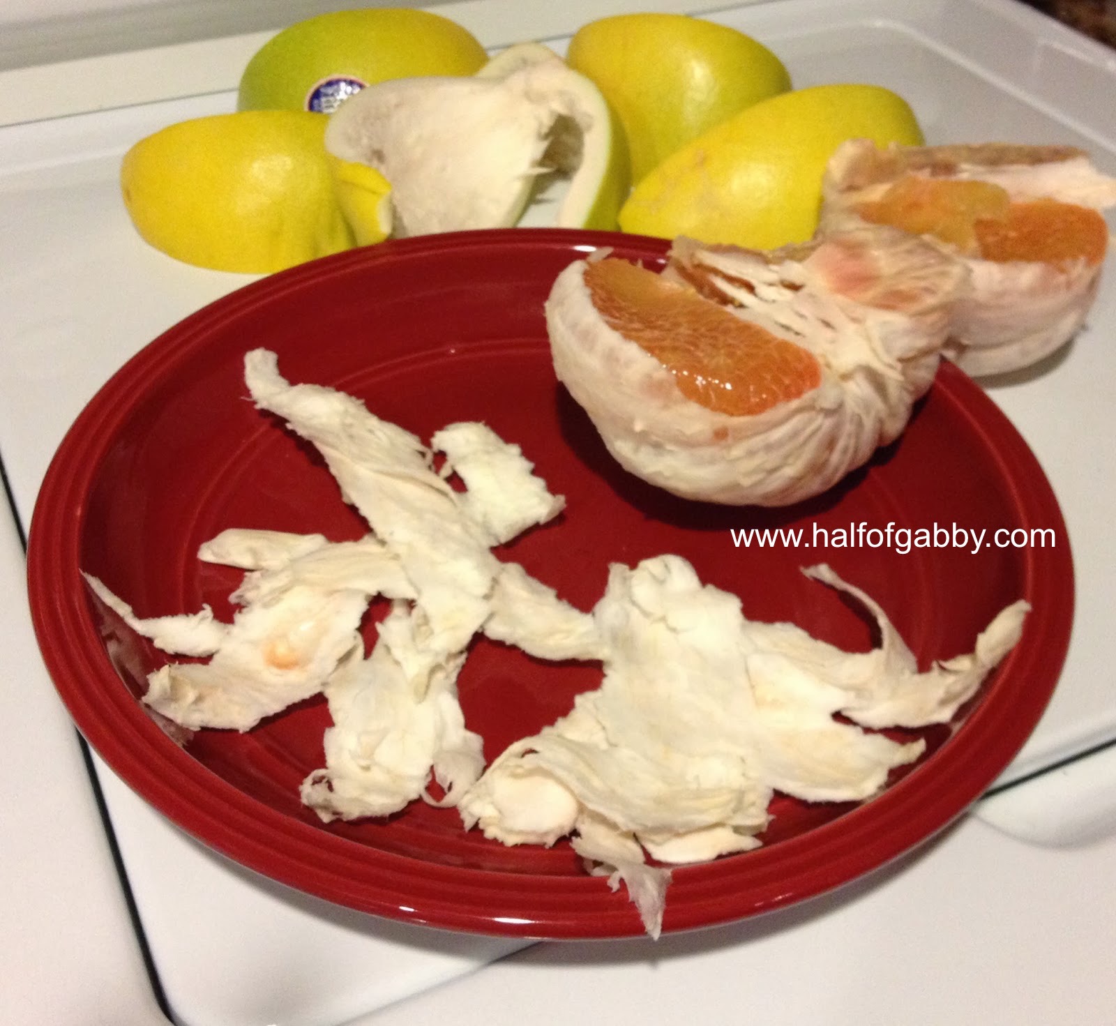 Pummelos are also huge! So they fill you up. In fact, I usually only eat a half of one for my TV snack. My hubs usually eats the other half (lucky bastard doesn't have to do a lick of work to unpeel it!).