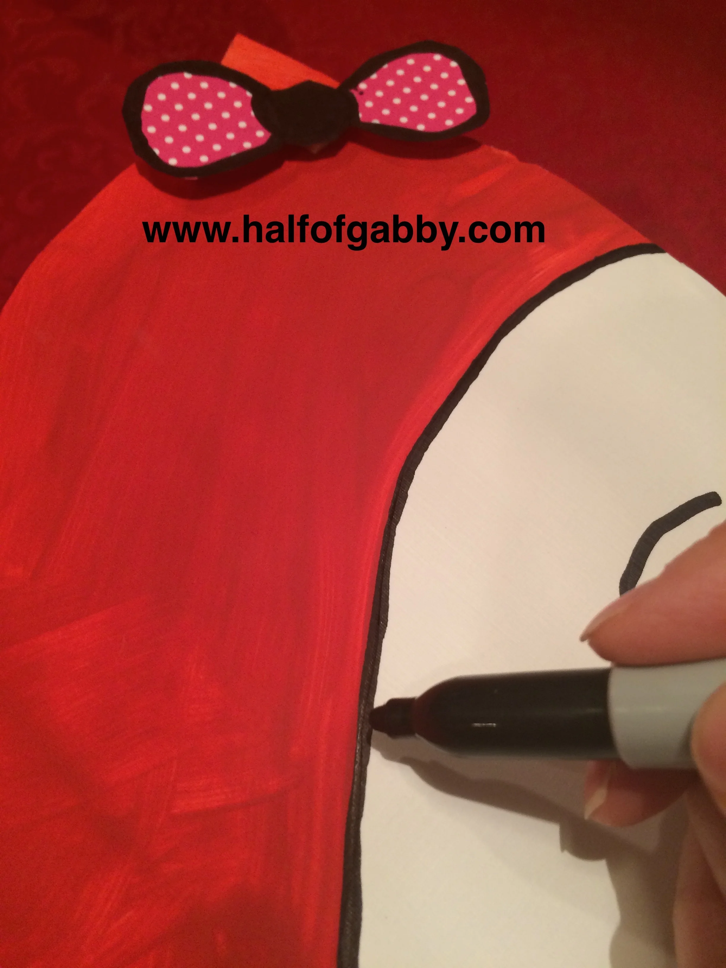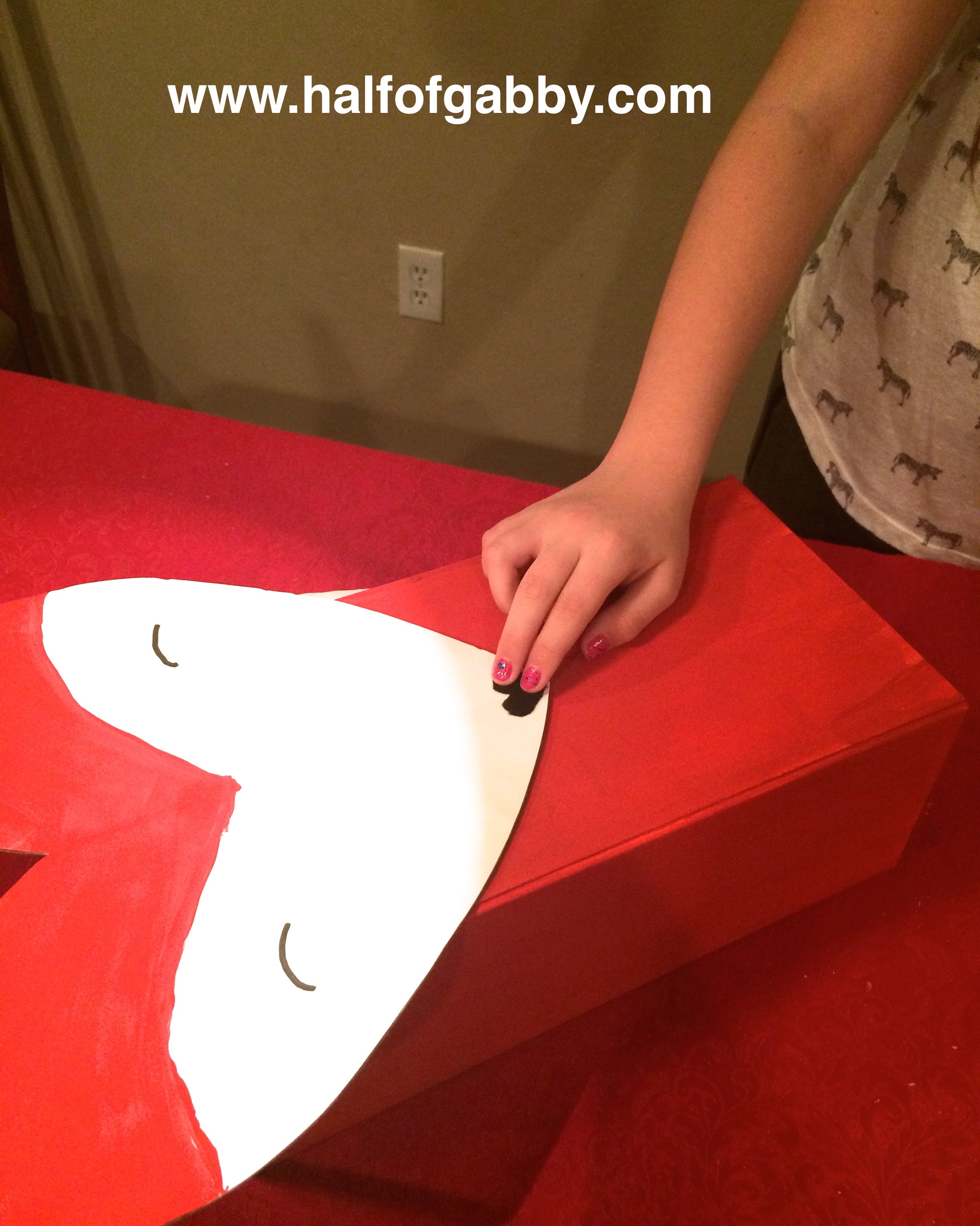 This will still leave a smaller white heart as the 'face' but create 'hair/fur' on the top of the head. You can paint it any color you'd like but Gia chose to use the same red that she used to paint the box (the fox's body).
