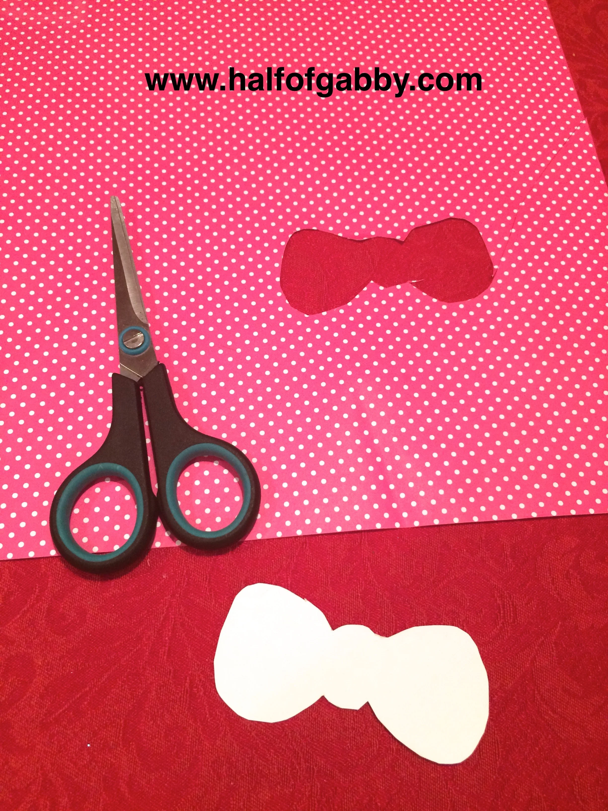 If you're feeling confident, you can simply turn your paper over and draw your bow and then cut out. Gia opted to make a template for her bow out of some of the white card stock. She then laid the template over her decorative paper, traced it, and cut it out.