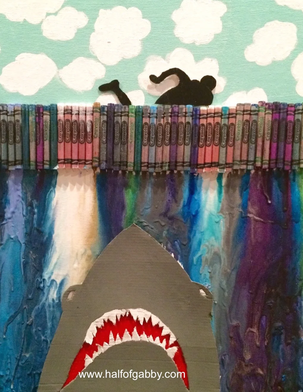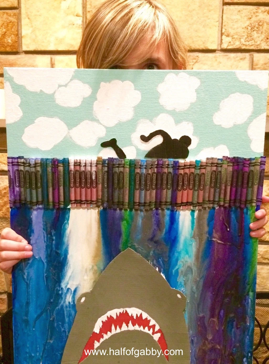 Now I'm sure I'm a biased mommy but I gotta be honest, I think my 9 year old's shark crayon art turned out way cooler than the one we saw on Etsy and I love it a million times more.