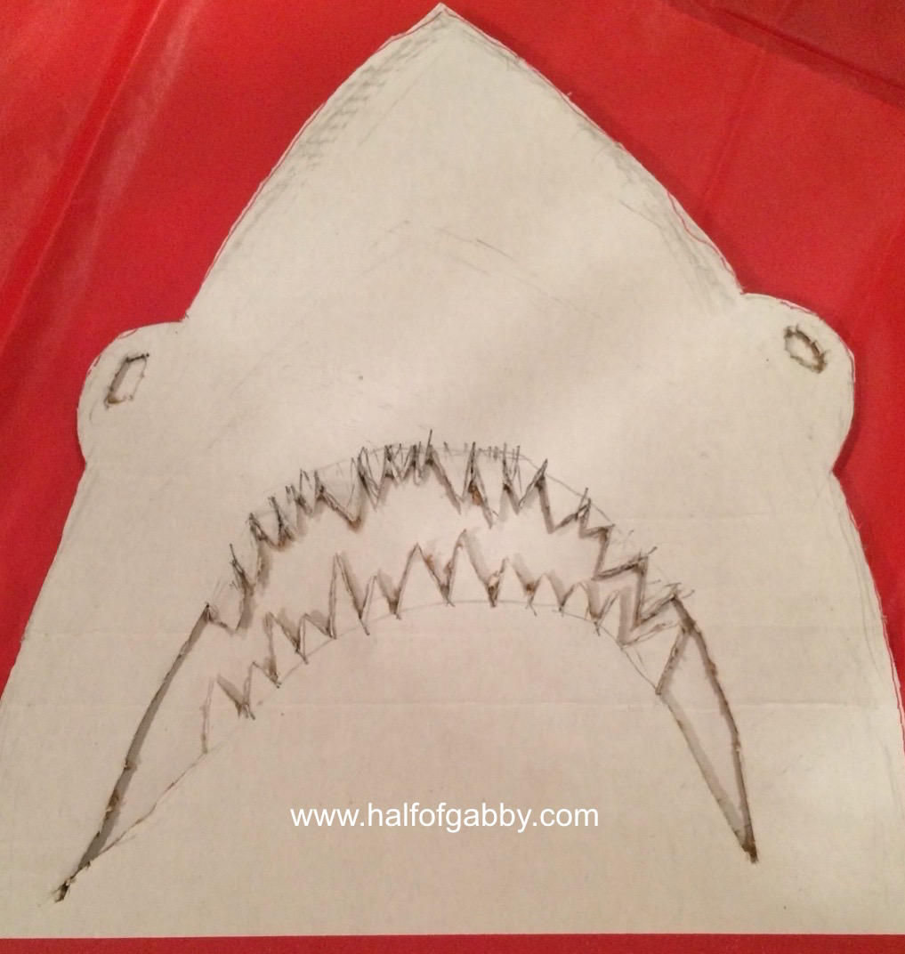 This will serve as the inside of the shark's mouth. Once you glue the teeth/eyes shark head directly on top of this head, it'll give the shark a 3D effect and the inside of the mouth will be red.