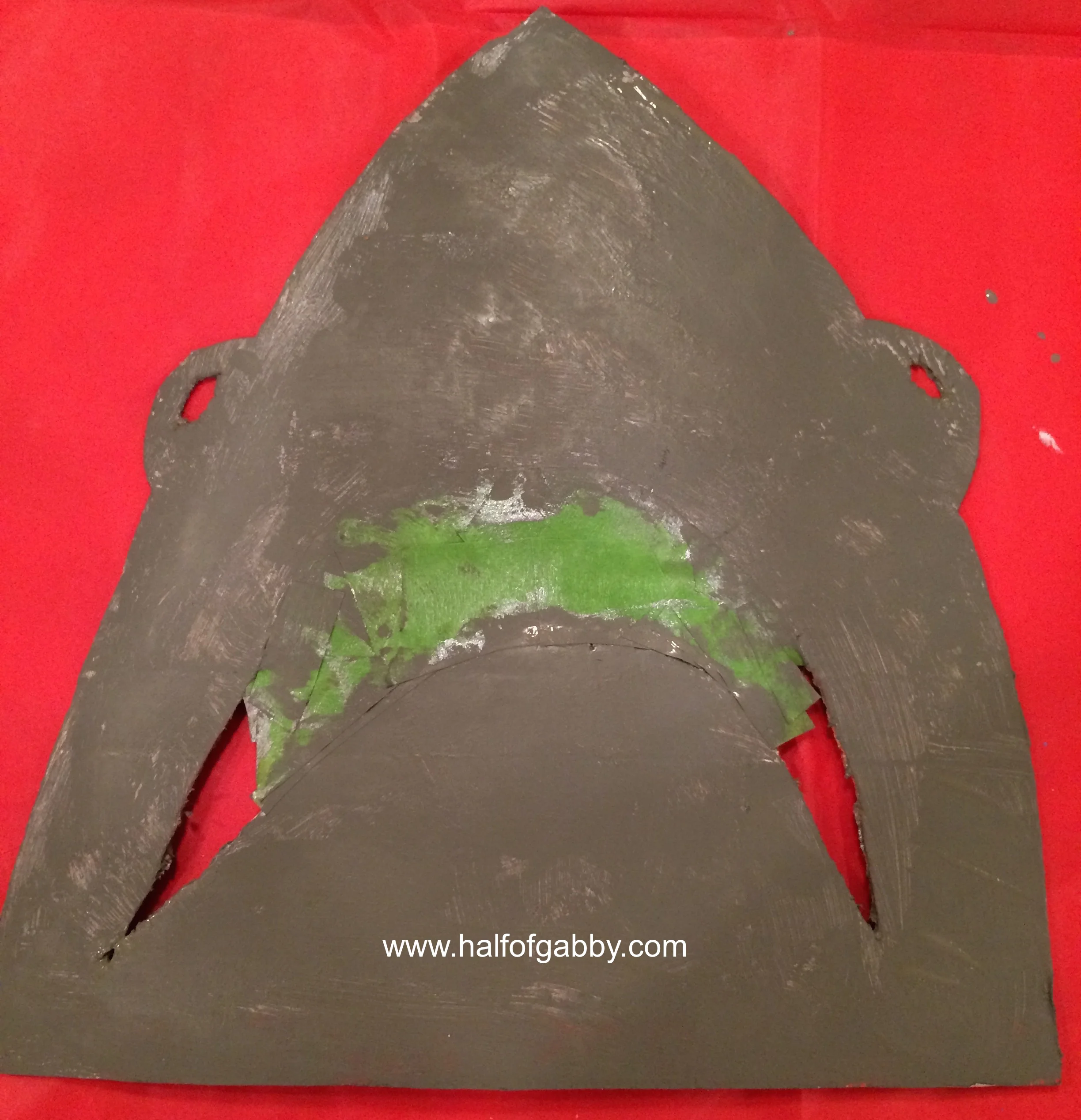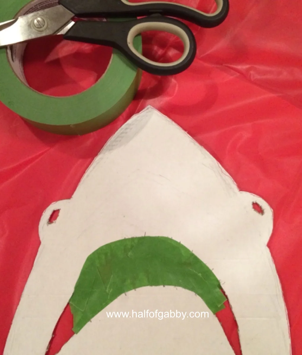 5. Now take the teeth/eyes shark head and use Painter's Tape to carefully cover the teeth.