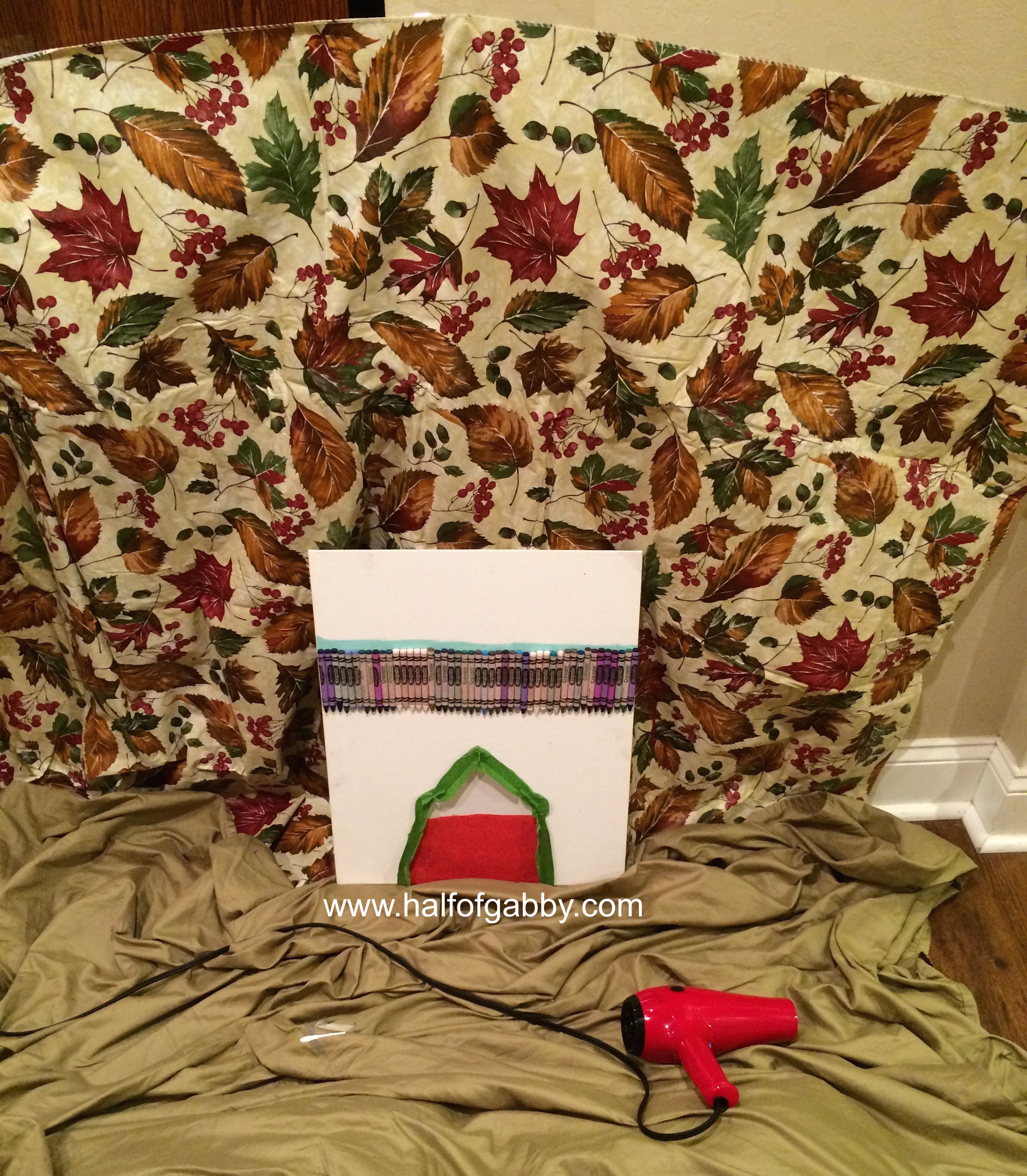 11. Set up a waxing station. We put an old sheet on the floor and then taped a plastic table cloth to the wall that the canvas would be leaning up against.