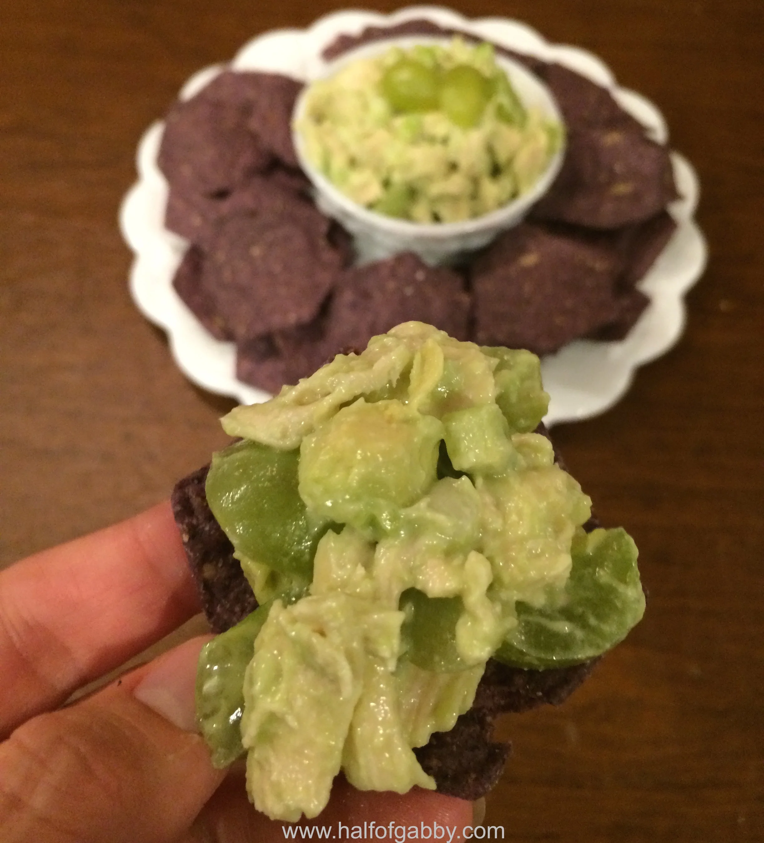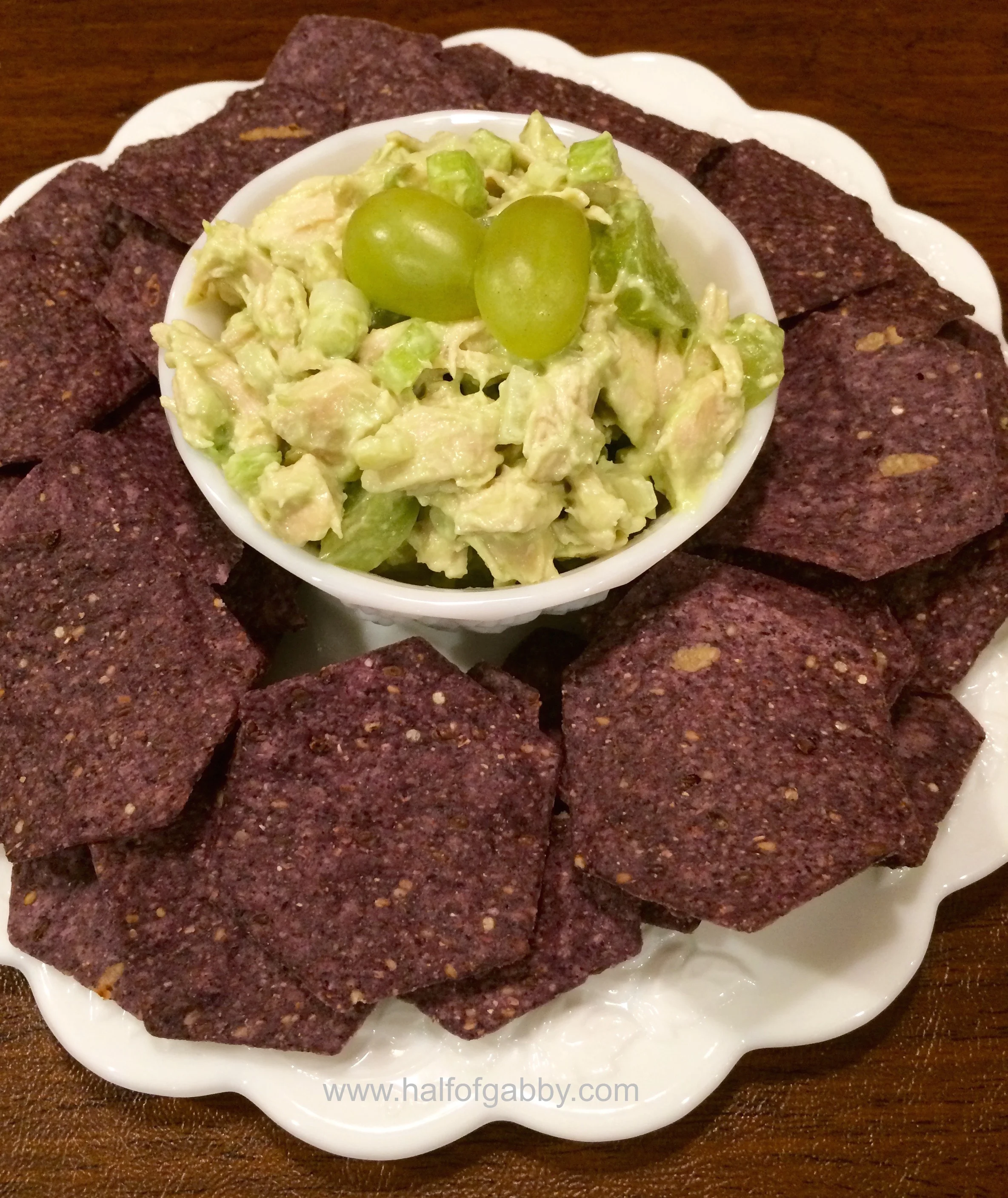 Omg this chicken salad with these blue corn chips is beyond words. I'm telling you it's unbelievable! My hubs and kids prefer eating sandwiches, but I can't eat gluten because it messes with me. So I either eat mine solo or with gluten free blue chips.