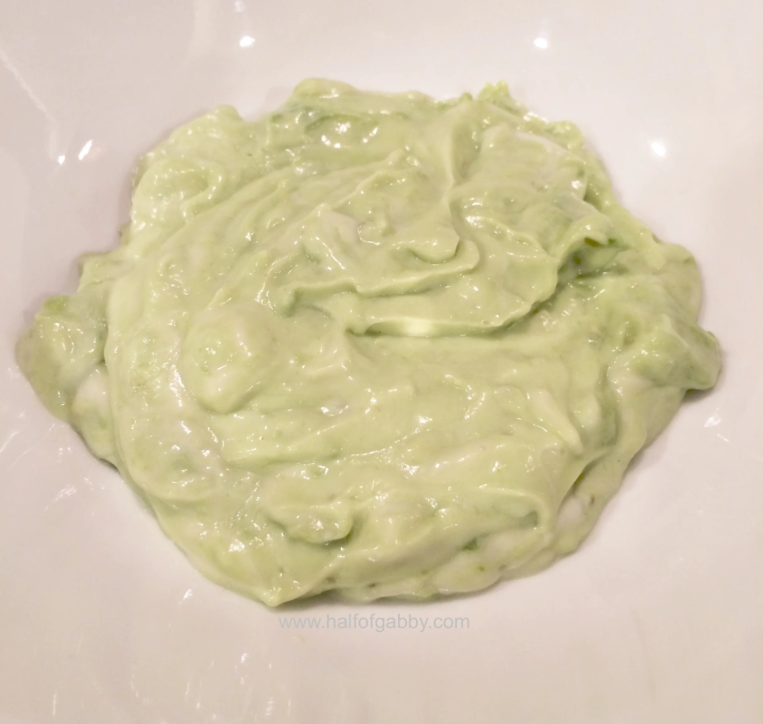 1. Blend the plain Greek yogurt, light miracle whip, and 3/4 of your avocado in a blender or FP.