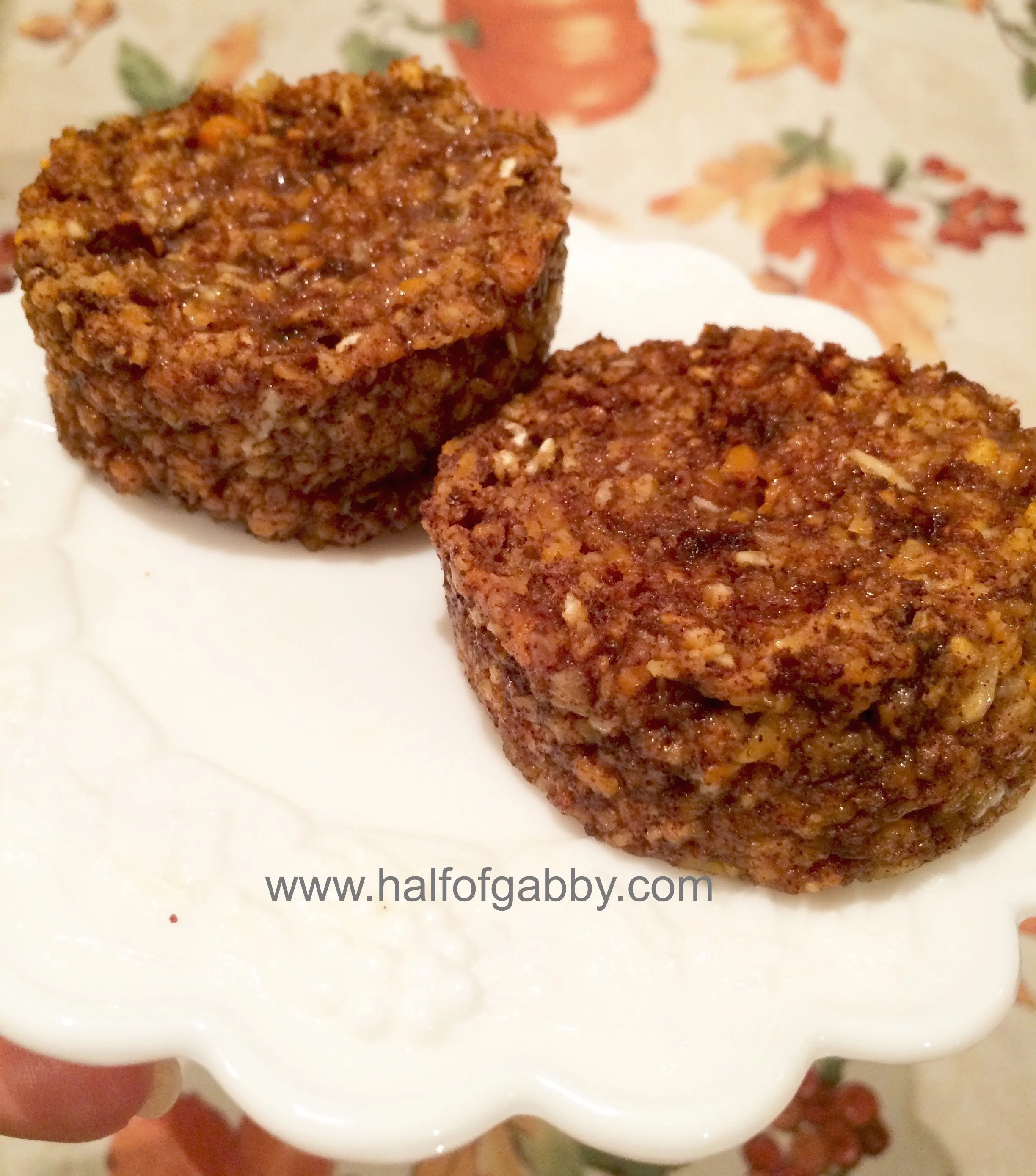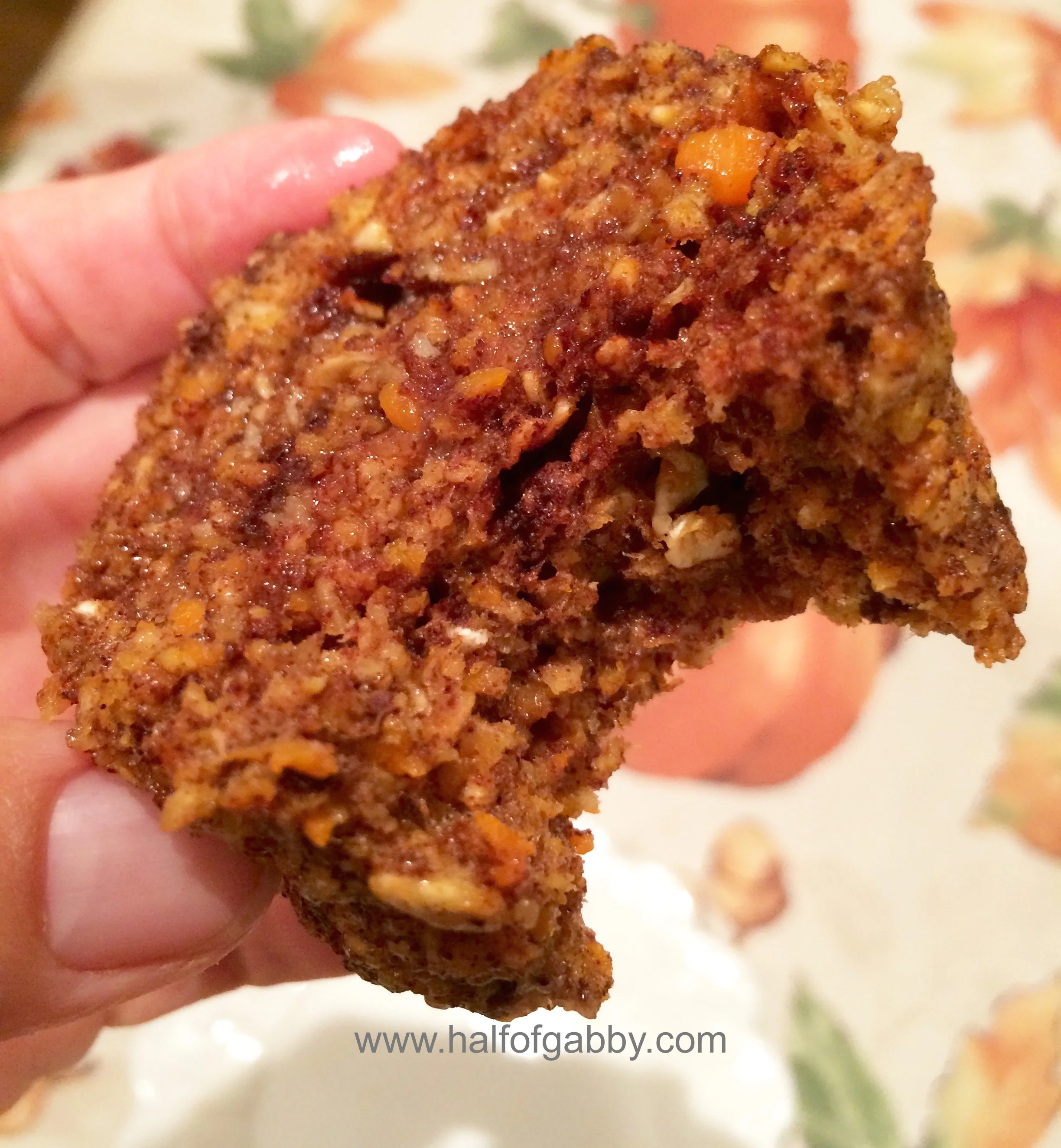 So before I give you the recipe let me explain something. This muffin is NOT going to taste like a two-story carrot cake with mounds of cream cheese frosting on it. I mean, I would imagine you already knew that but I just wanted to remind you that this is a muffin we're talking about. And although this muffin is pretty sizable (I cut mine in half to make two), it's not the same size as those gargantuan ones you get at the bakery that are 1,200 calories each. However, this muffin is still fabulous and it has that 'carb-y' taste that we all crave and love, yet the ingredients are healthy and nourishing.