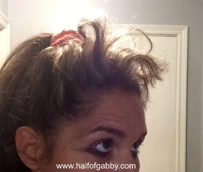 I had my hair up in one of those big puffy scrunchies. I must've missed some of my hair while I was going around my ponytail three times because there was a big loop of frizzy hair sticking out of the top of my head. It looked like I hooked my finger at the top of my head and pulled a huge piece of hair out and just let it dangle and flop around on my head.