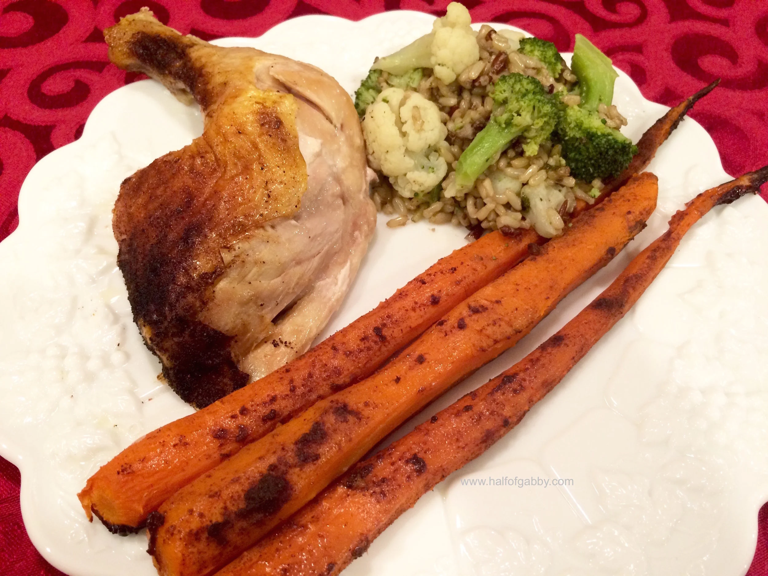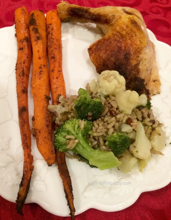 Roasted Turmeric Chicken, Cinnamon Carrots, and Broccoli/Cauliflower Rice