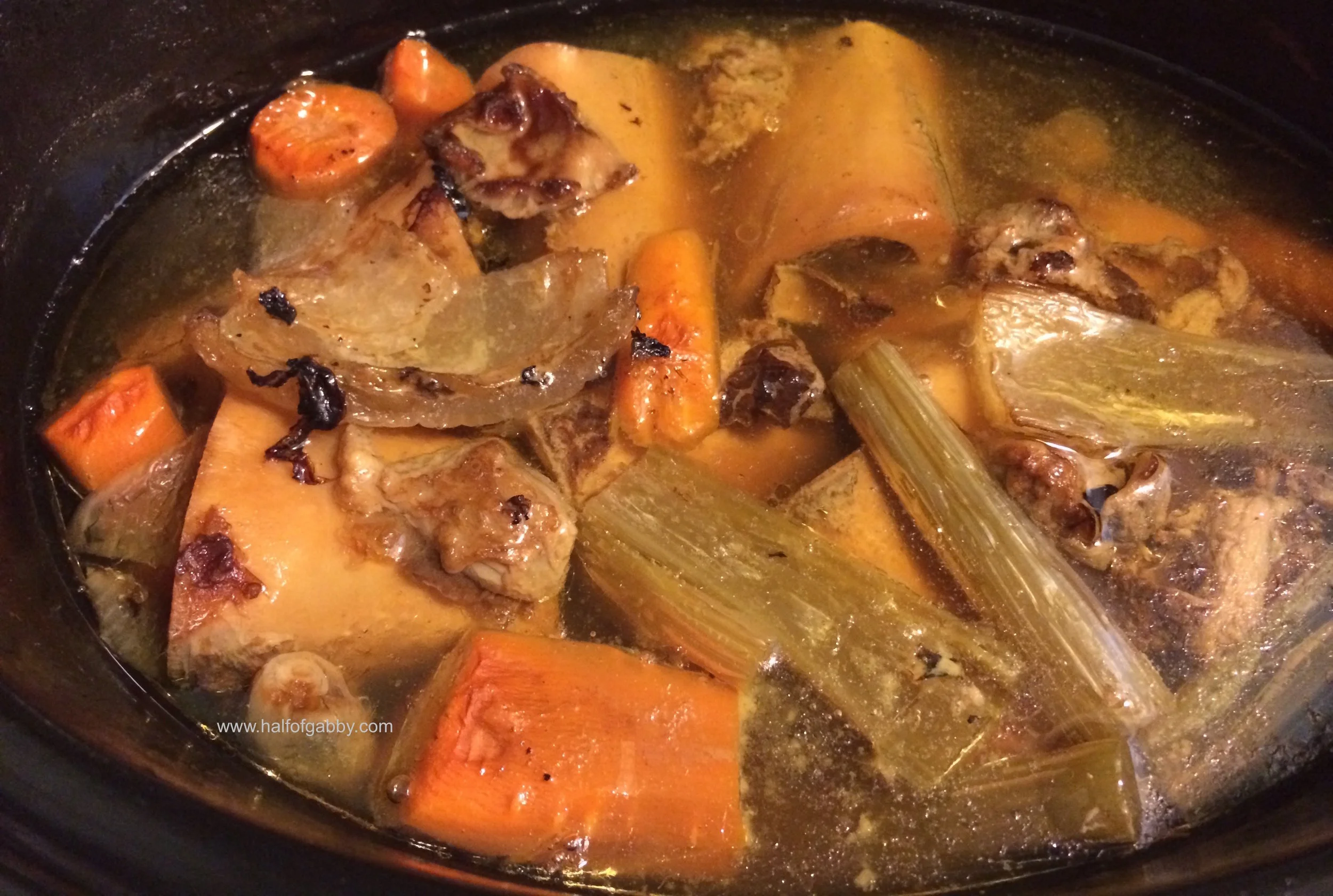 3. Throw in ALL other ingredients into the crockpot. Fill with water until it's covering all the ingredients.