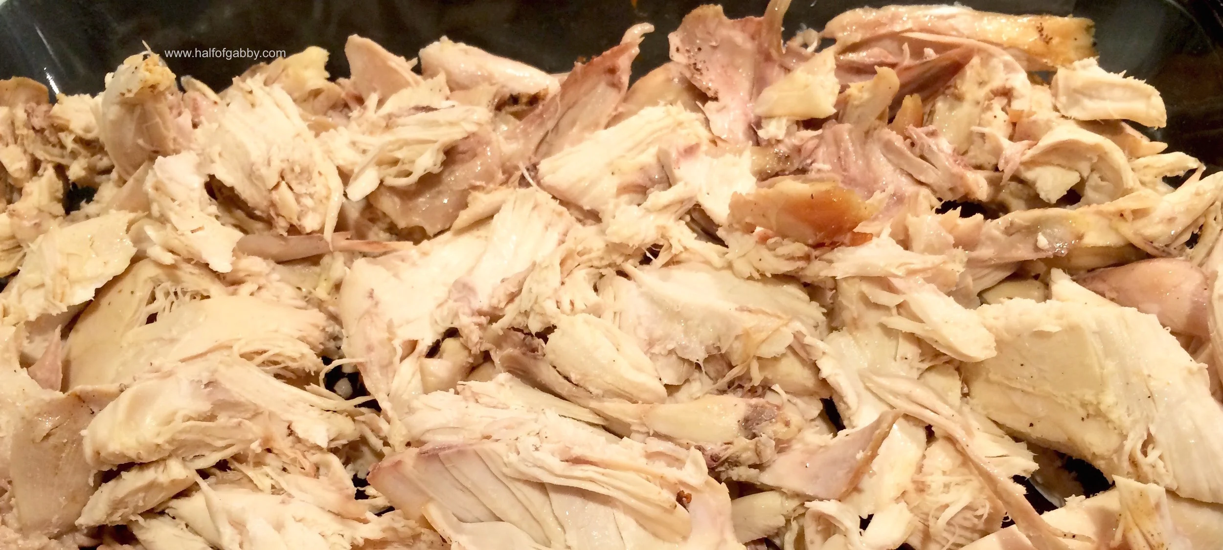1. After your Roasted Turmeric Chicken dinner, you are going to pick clean both chicken carcasses. I know, I hate this part too. Put all of your leftover chicken in a dish/container and store in fridge until the day of your Second Dinner.
